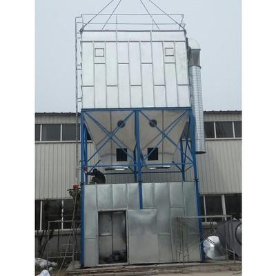 含尘气体由除尘器进风口进入上部除尘净化部,通过滤袋进入上箱体的过程中,由于滤袋的各种效应作用将粉尘、气体分离开。粉尘被吸附在滤袋上,而气体穿过滤袋由文氏管进入反吹室,净化后的空气可以直接通过除尘器的回风口排出,完成整个系统的循环。含尘气体在滤袋净化的过程中,随着时间的增加,积聚在滤袋上的粉尘越来越多,使滤袋的阻力逐渐增加,通过滤袋的气体量逐渐减少,为了使除尘器能正常工作,反吹室安装了脉冲自控清灰装置,是由脉冲控制仪发出指令按顺序触发控制阀,使气包内的压缩空气由喷吹管经各孔文氏管喷射倒各对应的滤袋内,滤袋在气流瞬间反向作用下急剧膨胀,使积在滤袋表面的粉尘脱落,滤袋得到再生,被清掉粉尘的粉尘通过卸料器落入储灰仓。完成整个除尘过程的连续作业。