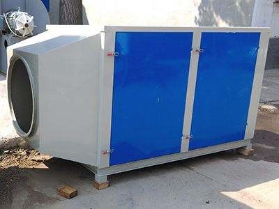 活性炭环保箱材质:箱体采用2mm厚冷板折弯,箱体框架用4x6方管焊接 风 管用8mm镀锌管,由法兰连接组成。
